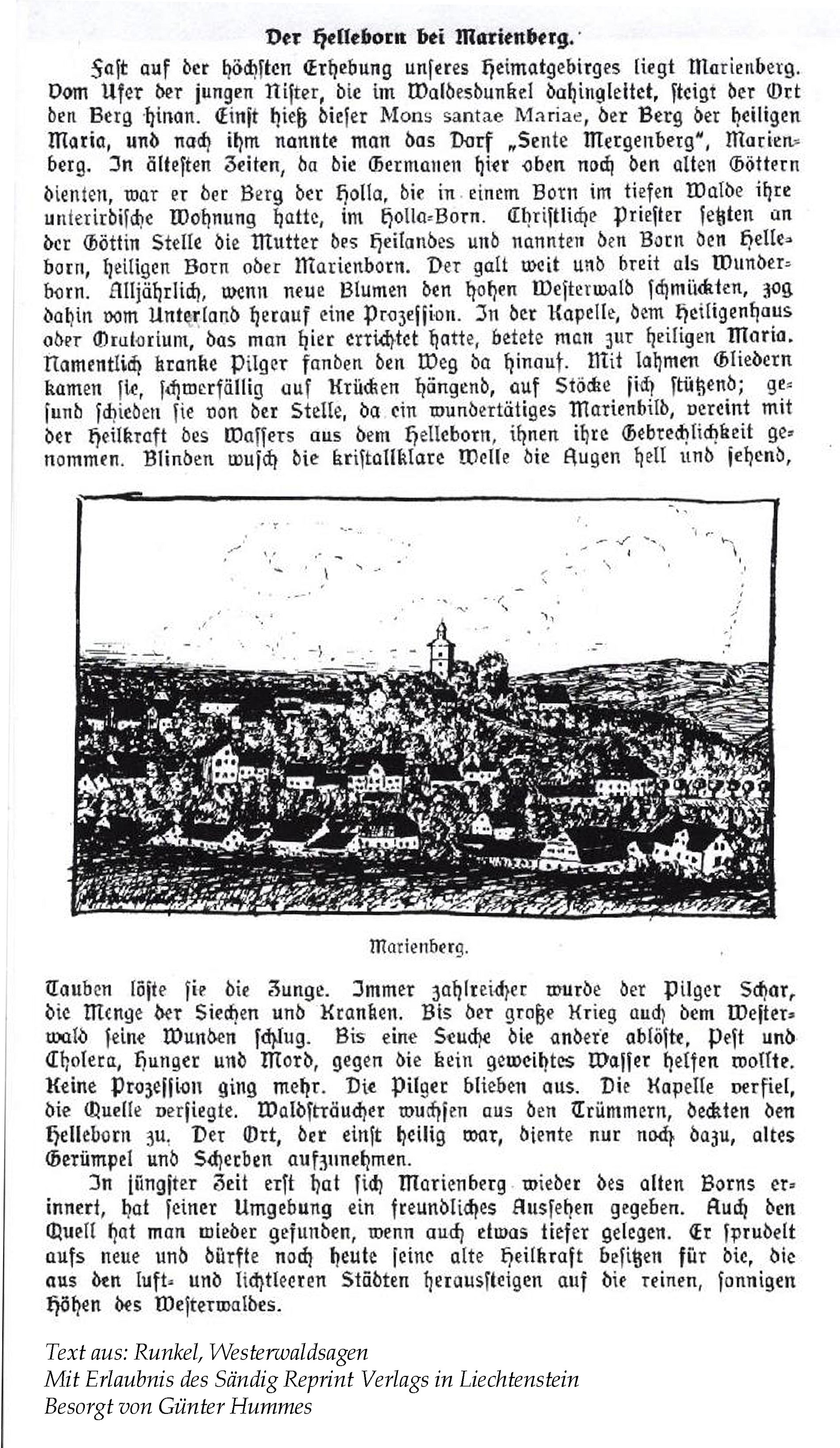 Allerdings sind durch Eugen Heyn 4.) noch zwei Sagen über den Kirchberg und den Gang frommer Personen zur Marienquelle erhalten geblieben. Nach Heyn schreibt Dekan Anton Wilhelm Jacob Mencke Folgendes in der Bad Marienberger Kirchenchronik: